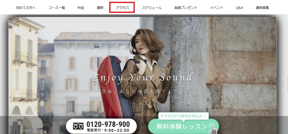 ①下記のような音楽教室にアクセスします。